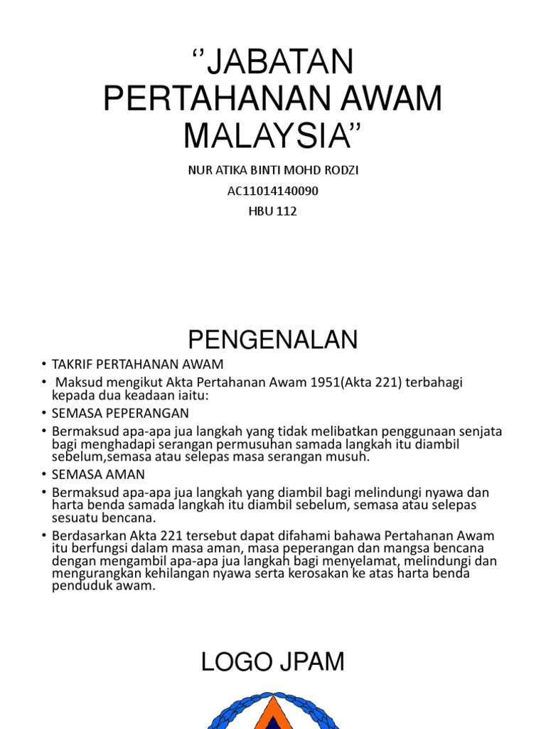 Video korporat jabatan pertahanan awam malaysia. Download ppt peringkat lanjutan jabatan pertahanan awam malaysia melawan kebakaran. Get their location and phone number here. Video lagu sentiasa bersedia korporat pertahanan awam. Farah norshahira binti azahar kelompok 3 blok a, 0.05 kuarters klia, 71800 nilai, negeri sembilan.