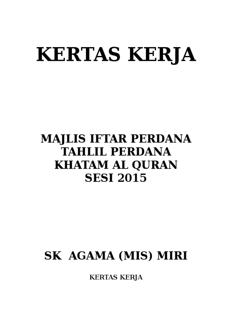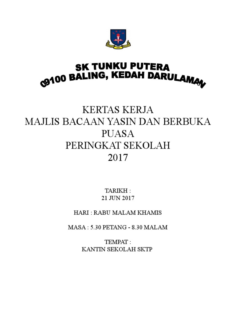 Kertas Kerja Program Berbuka Puasa Bersama Anak Yatim from yayasanpanjinusantara.org .kertas kerja majlis iftar perdana sesi 2012 asrama smk gerik kertas kerja majlis berbuka puasa sesi 2012 1. Yang sinonim dengan amalan kemasyarakatan turut mengambil peluang melalui satu program. Majlis ini dilangsungkan khas untuk pelajar tingkatan 5 yang akan menduduki spm. Lauk pauk, persembahan, lawak kelakar dan semuanya memang tip toplah. Jawatankuasa kerja telah bermesyuarat hari ini (22/7/2009) di cafe 14 seksyen 14 petaling jaya. Salah satunya adalah menyegerakan berbuka puasa. Secara garis besar dikelompokan dalam. Contoh kertas kerja khatam quran cute766.