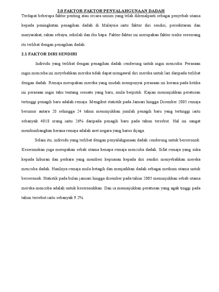 Penyalahgunaan internet di kalangan remaja. Hal ini demikian kerana, dadah yang pada asalnya menjadi ubatan atau sebagai penahan sakit sebenarnya tidak berbahaya jika tidak disalahgunakan. Makalah penyalahgunaan narkotika dan psikotropika. Jangan menilai seseorang dari luaran sahaja. Dewasa ini, gejala penyalahgunaan dadah dalam kalangan masyarakat negara kita semakin serius dan tidak dapat dibendung lagi.