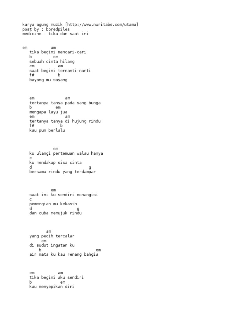 14 Lirik Tika Dan Saat Ini Info Kord from i2.wp.com Join facebook to connect with tika dan saat ini and others you may know. E a d g b e. May 19, 2020 · tika dan saat ini chords. About press copyright contact us creators advertise developers terms privacy policy & safety how youtube works test new features press copyright contact us creators. 2,392 views, added to favorites 46 times. View the profiles of people named tika dan saat ini. More images for tika dan saat ini » Last edit on may 19, 2020.
